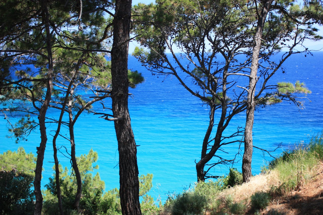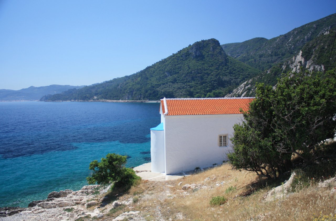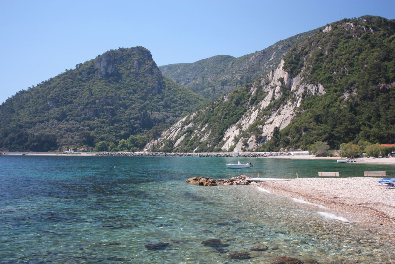 Als we de kustweg verder volgen richting Karlovasi, komen we nog wat dorpjes tegen onderweg. Hier vind je niet zoveel toeristen maar dat maakt het niet minder mooi. Als we het wijngebied gepaseert zijn word het landschap wat ruiger. De bergen staan dichter bij de kust en vormen met hun steile bergwanden impossante kloven. Door eerdere bosbranden (voor 2000) waren ook hier stukken bos verbrand met zwartgeblakerde bomen wat een bepaalde spookachtige sfeer gaf.