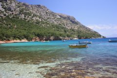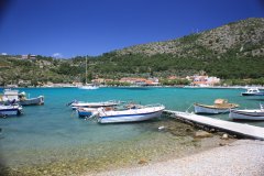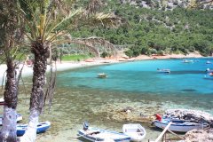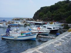 Een natuurlijke haven. De vissersboten liggen er eigelijk voor anker voor een witte kiezelstrandje. Het water in de baai is er ondiep en loopt heel langzaam af.