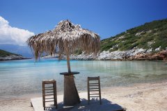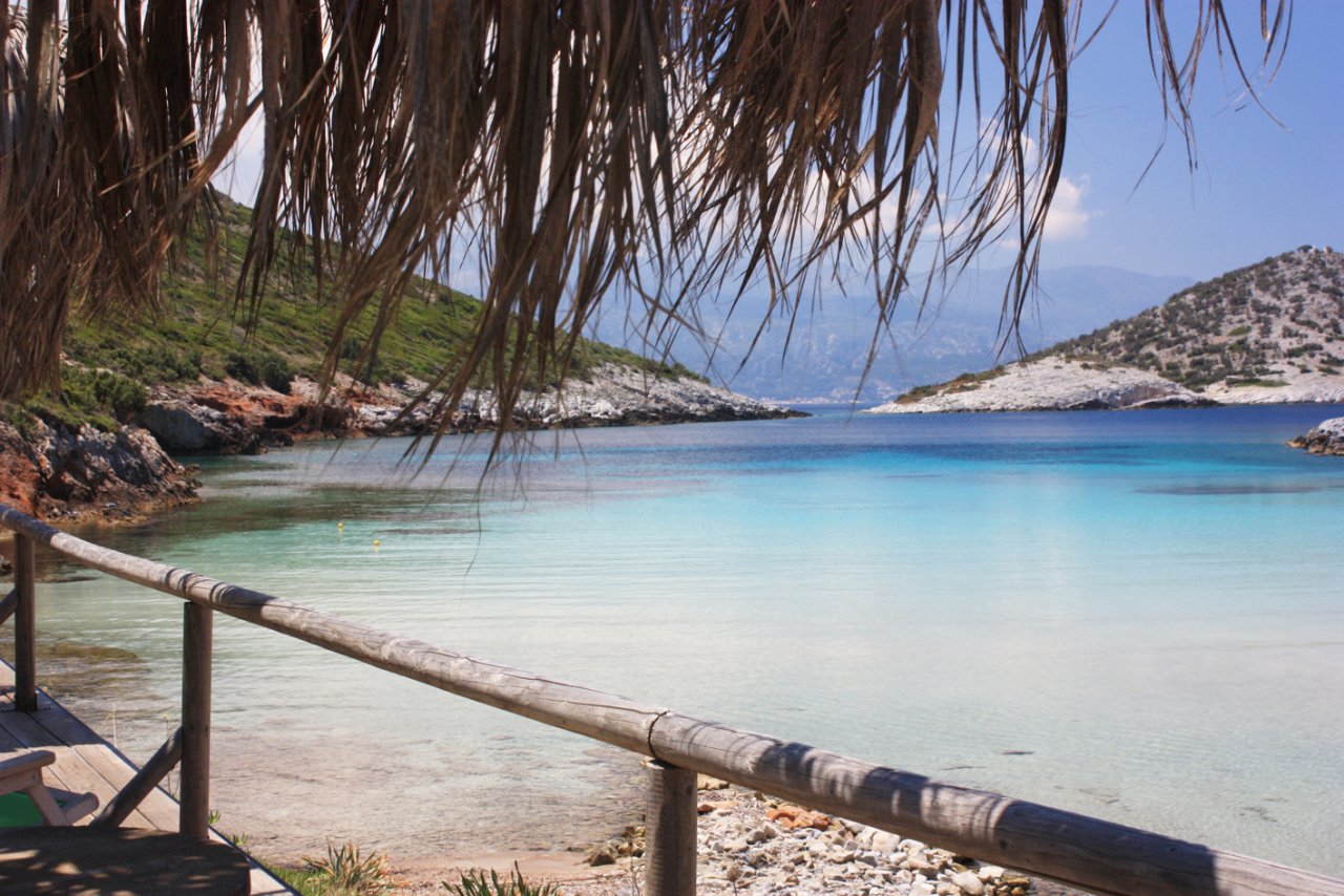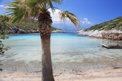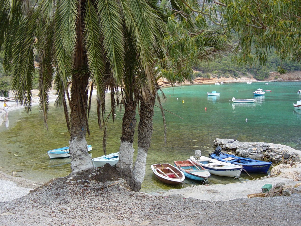 In het uiterste noorden van dit deel van het eiland vind je een paradijselijk baaitje met zandstrand. Als het in het Caribisch gebied zou zijn zou je het ook geloven. Dit strand ligt aan het eind van een onverharde weg die even voor Agia Pareskevi linksaf gaat. Het strand heeft ligbedden en een taverne. Het water is erg ondiep en zeer geschikt om te snorkelen, je ziet de vissen zo zwemmen.