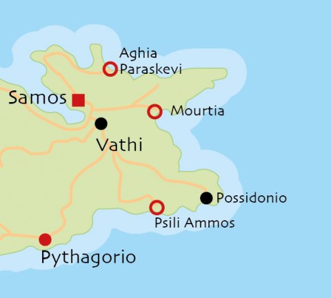 Het Oostelijke deel van Samos omvatten diverse prachtig stille baaien, waaronder Agia Paraskevi, Liva Daki, Mourthia etc. Dit zijn stuk voor stuk prachtige strandjes of natuurlijke havens.