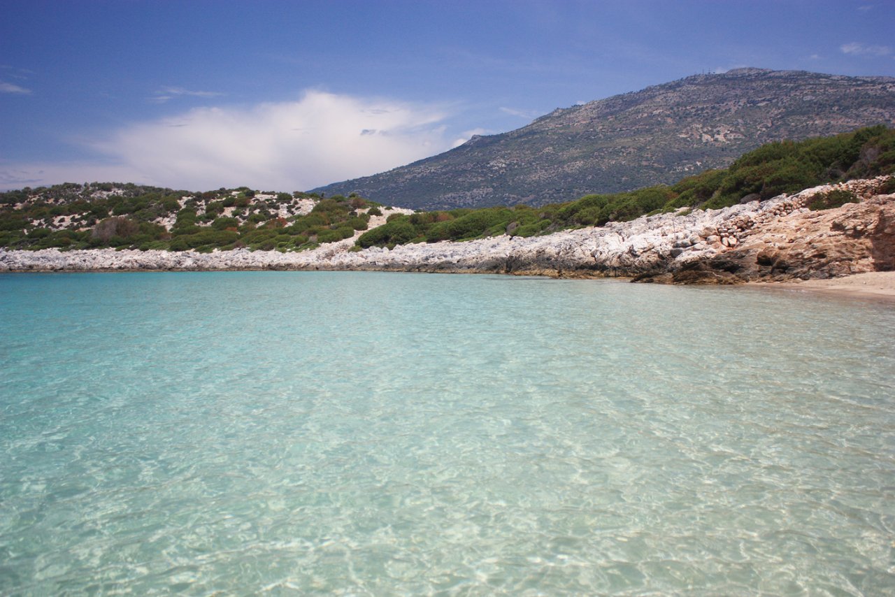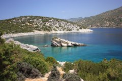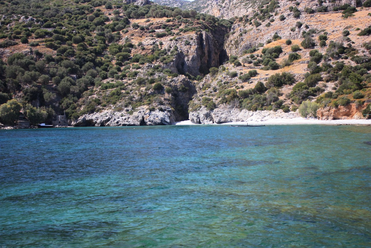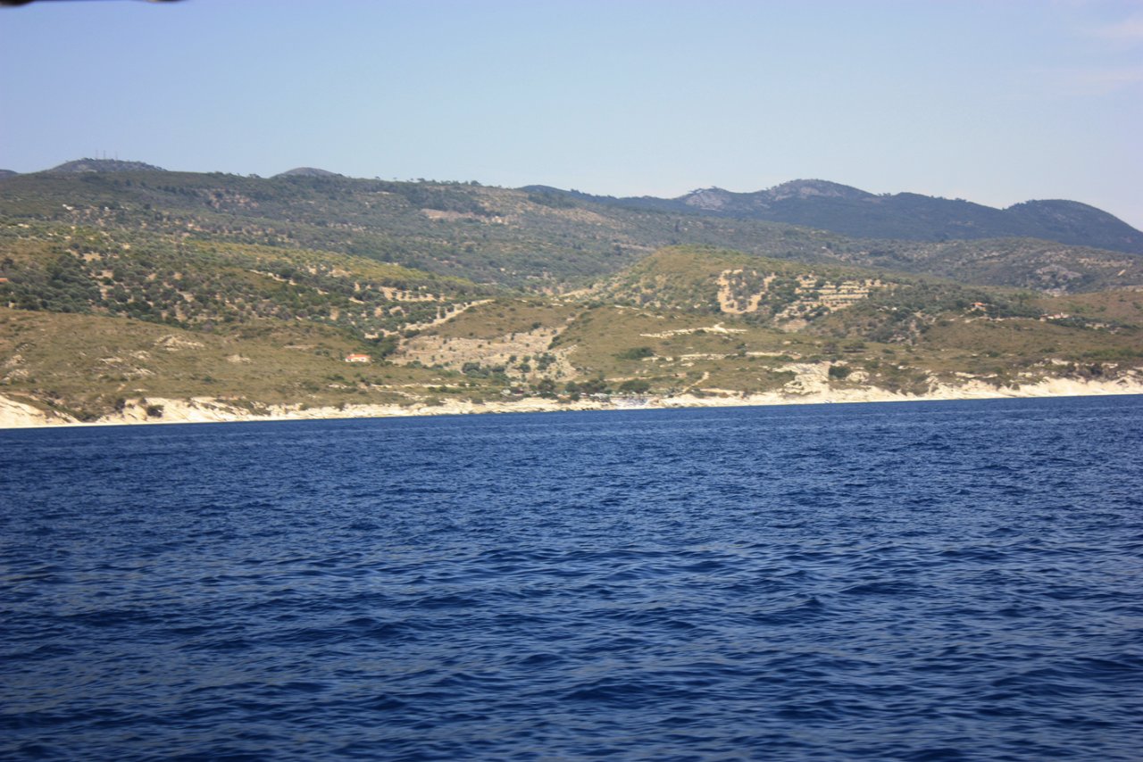Daarna ging de tocht verder naar Tsopelas Beach. Tsopelas beach ligt aan de onderkant (buik) van Samos. Dit is een plekje aan de rotsachtige kust alleen per boot bereikbaar. Hier is ook gelegenheid om de zwemmen te zonnen en