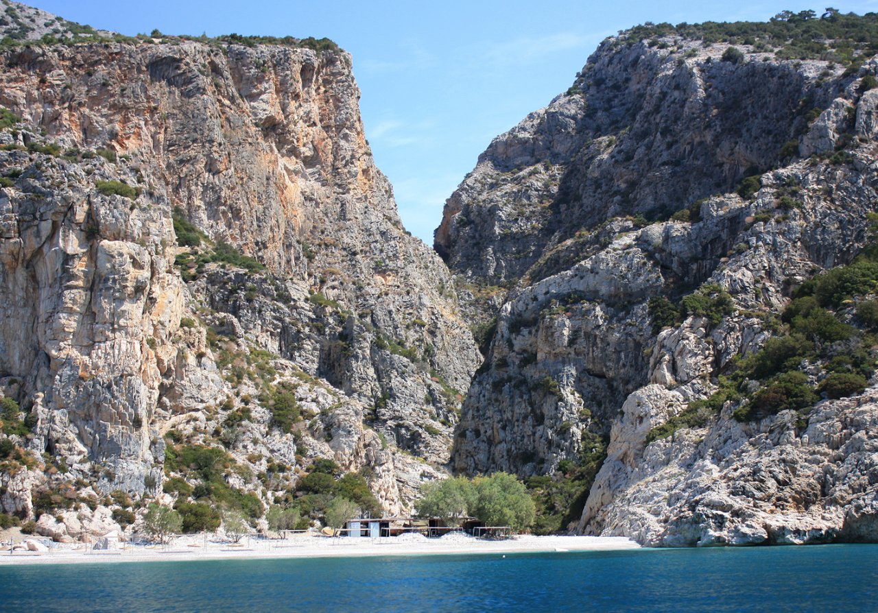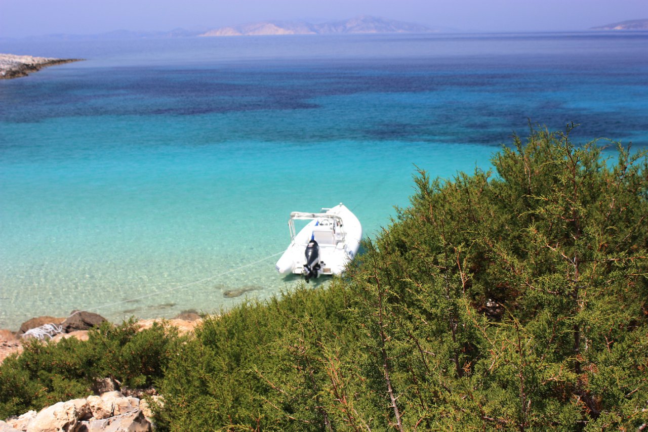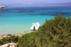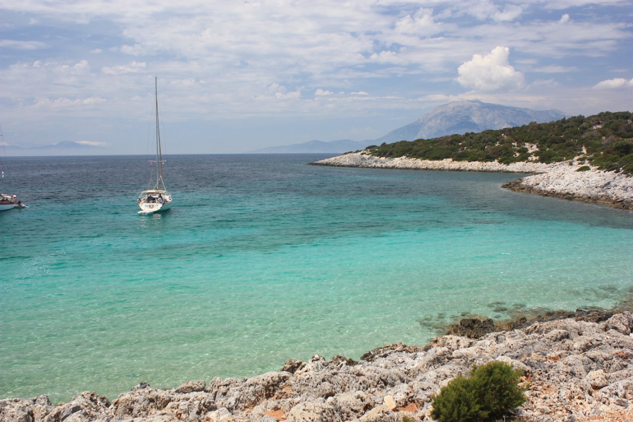 Daarna ging de tocht verder naar Tsopelas Beach. Tsopelas beach ligt aan de onderkant (buik) van Samos. Dit is een plekje aan de rotsachtige kust alleen per boot bereikbaar. Hier is ook gelegenheid om de zwemmen te zonnen en