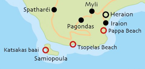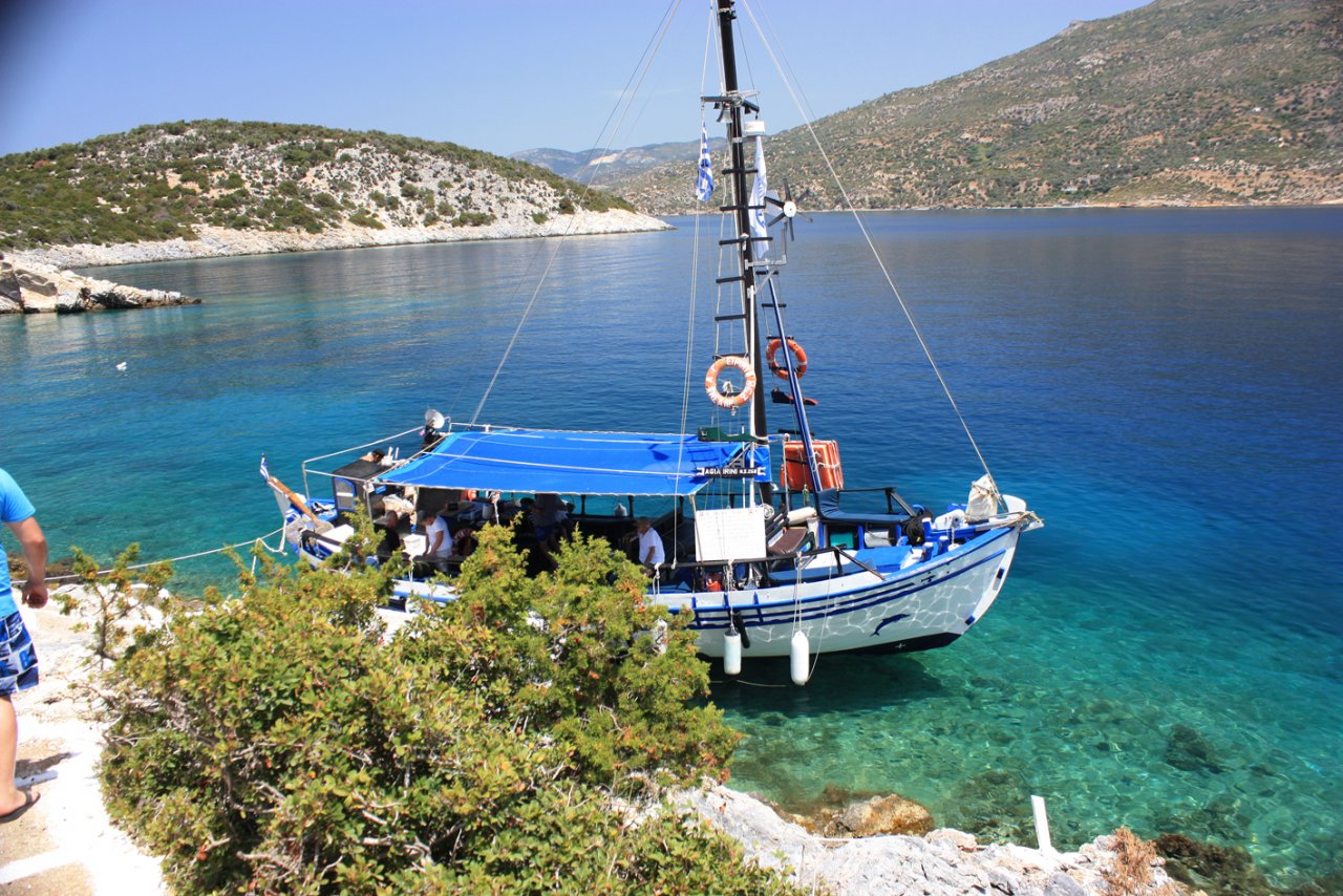 Samiapoula hebben we bezocht met een boottrip met Captain Yannis, een lokale schipper. Met een voormalige vissersboot wordt je naar Samiapoula gevaren om te zwemmen en daarna naar een ander strand, Tsopelas beach aan de zuidkust van Samos om te lunchen en de Sirtaki te dansen..
