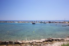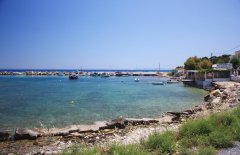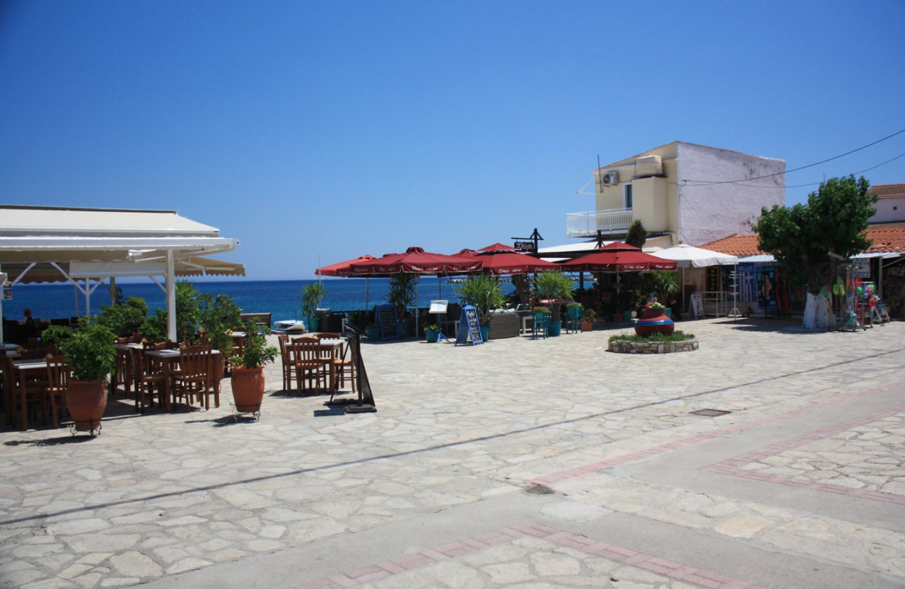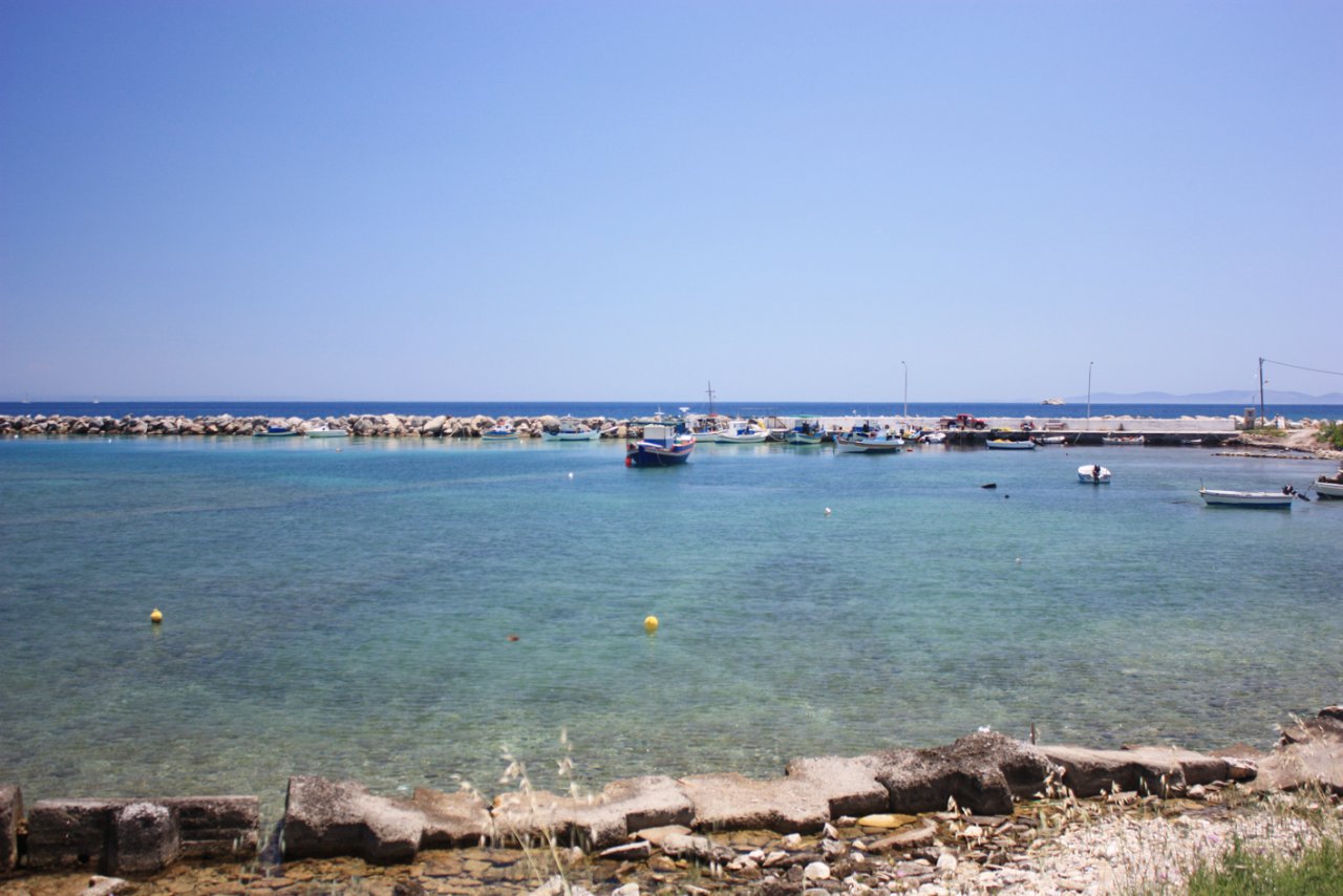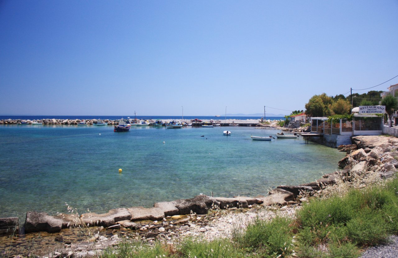 Pappa Beach ligt op een kleine kilometer van Ireon en is te bereiken via een onverharde weg. Het is te doen met de auto maar je moet wel voorzichtig zijn door kuilen en losse stenen. Het strandje ligt in een baaitje van witte rotsen en witte pebbels waardoor de zee een prachtige groenblauwe kleur heeft. De zee is hier ook niet diep en loopt geleidelijke af, een ideale plek om te zwemmen. je kunt hier ook ligbedden met een parasol huren. Bij Pappa Beach is ook een taverne die gerund wordt door Maria, de eigenaresse. Je hebt er doordat deze wat hoger gelegen is een mooi uitzicht op zee en het strand en in de verte kun je Pythagorion zien liggen aan de andere kant van de grote baai. Het is hier heerlijk toeven. Het adres kun je vinden op de contact-pagina.