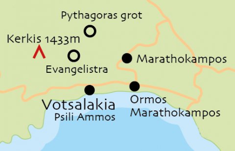 Aan de voet van de hoogste berg van Samos, de Kerkis, vind je nog wat toeristische plaatsen. Marathokampos, Ormos Marathokampos en Votsalakia. Deze plaatsen liggen in het zuidwesten van het eiland.